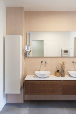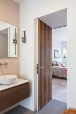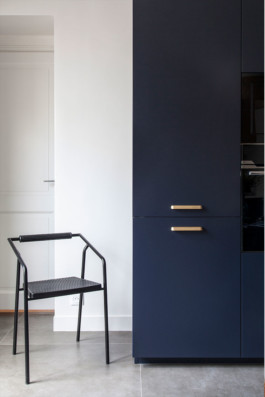 Le projet proposait un escalier discret et pratique transformant l’appartement en duplex. Placé en cœur d’appartement entre l’entrée principale et la cuisine, il relie l’étage supérieur des enfants aux espaces partagés.