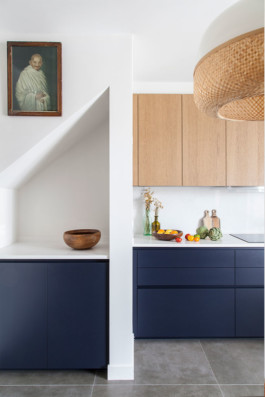 Quand les clients ont fait appel à nos services, ils vivaient déjà dans l'appartement de 150m2 avec leurs deux enfants depuis une quinzaine d’années et venait d’acquérir un appartement de 50m2 qui se trouvait juste au dessus.