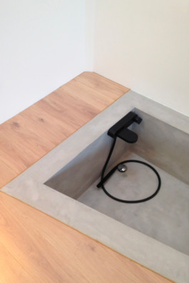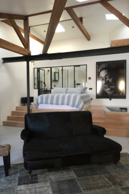 Limitant au mieux l’emploi de cloisons, le seul espace complètement hermétique est celui des WC. La salle de bain est un espace semi-fermé donnant sur le reste du loft avec sa paroi vitrée.