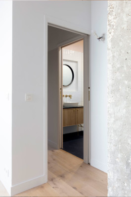 Cet appartement traversant au cœur d’une résidence des années 50, dans son état d’origine, a dû être totalement repensé afin d’accueillir une jeune famille et son mode de vie contemporain.