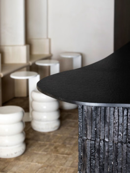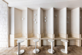 The shape of the seats offers privacy for each user. Every seat has its own lighting, table and stool. On the opposite, the barista has a global vision of his customers and the outside, and the mirror on the ceiling accentuates this desire for transparency in his work.